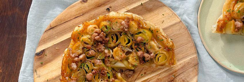 Pastel de puerros con butifarra